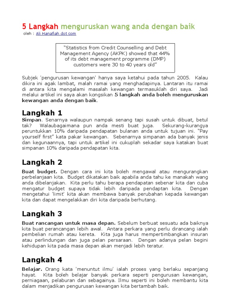 5 Langkah Mengurus Kewangan Pdf